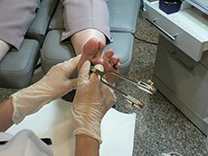Verschiedene Nagelkorrekturspangen können bei der Beseitigung der Folgen des Nagelproblems helfen. Bei Veränderung der Wuchsrichtung des Nagels fällt es meistens schwer den Nagel in eine angenehme Form zu bringen. Wir fräsen die Nägel flacher und bearbeiten ihn, so dass er im Schuh keine Beschwerden mehr macht.